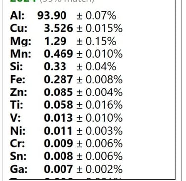 El análisis de espectrómetro de rayos X detectará e identificará todos los aceros, así como las siguientes bases de aleación:
